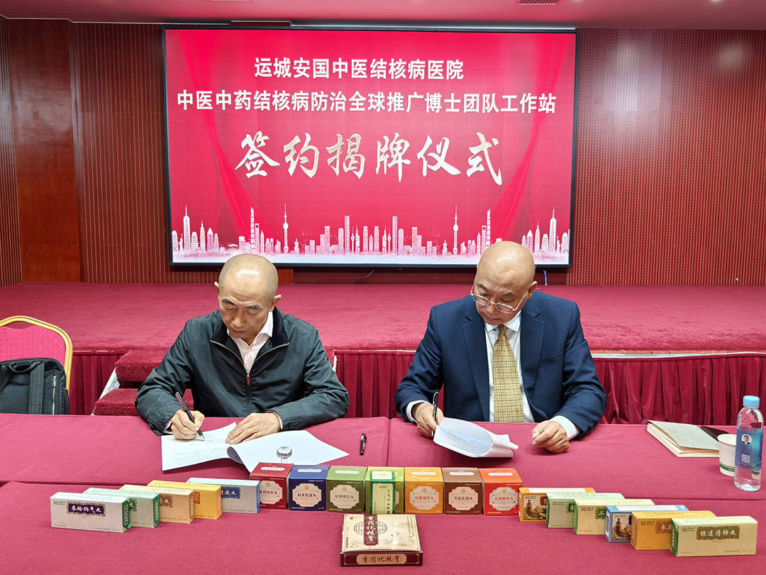 2025年10月20日上午,运城安国中医结核病医院会议室气氛热烈,在昆明医科大学教授何国忠,中国医院协会民营医院分会副主任委员兼秘书长张国忠,安国院领导班子及专家、医生代表的共同见证下,"何国忠教授中医中药结核病防治全球推广博士团队工作站"签约揭牌仪式隆重举行。此次合作标志着中医结核病防治体系迈入国际化、专业化发展新阶段,为全球结核病防控注入东方智慧。