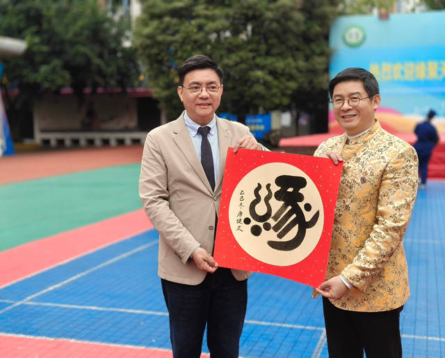 唐健文现场书写大爱之“缘”,将这个走遍了100多个国家的“缘”字书法作品赠予学校永久收藏,寓意文化传承无远弗届。这场活动创新推动传统文化进校园,为文化育人注入新活力。