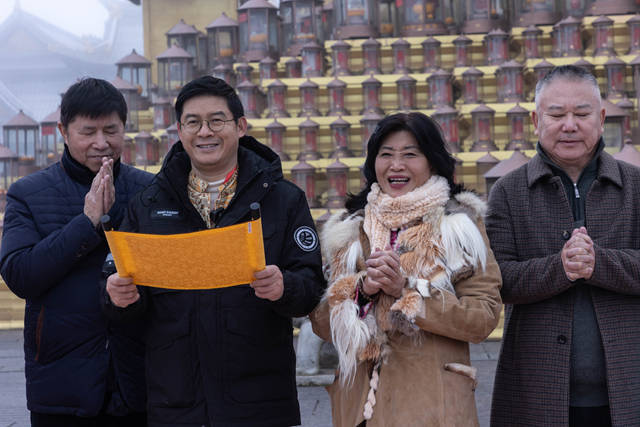 作为“世界和平缘”理念首倡者,唐健文在金顶之巅庄严宣读和平宣言:“从南岳衡山到峨眉金顶,我们传递的不仅是和平的理念,更是中华文明'天下大同'的永恒追求。”全体参与者齐声高呼“世界和平缘,和平到永远”,展现中华文明薪火相传的动人画面。