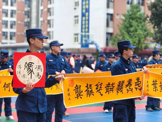 随后,500余名学生共同展示由唐健文创作的300幅姓氏文化书法作品。这场规模宏大的“中国古文字姓氏文化书法展公益行”,不仅展现了中华文字之美,更让学生们在实践中感受传统文化的魅力。