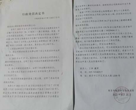 2023年8月25日,南京市规划和自然资源局作出“宁规划资源江宁罚(2023)22号”《行政处罚决定书》,责令涉事公司退还非法占用的全部土地,没收34.17亩农用地上新建的建筑物及设施,并处罚款1602.9606万元。邹先生作为涉案地块的被拆迁安置农民,在维护自身征地拆迁权益过程中,始终关注该行政处罚的实际履行情况。