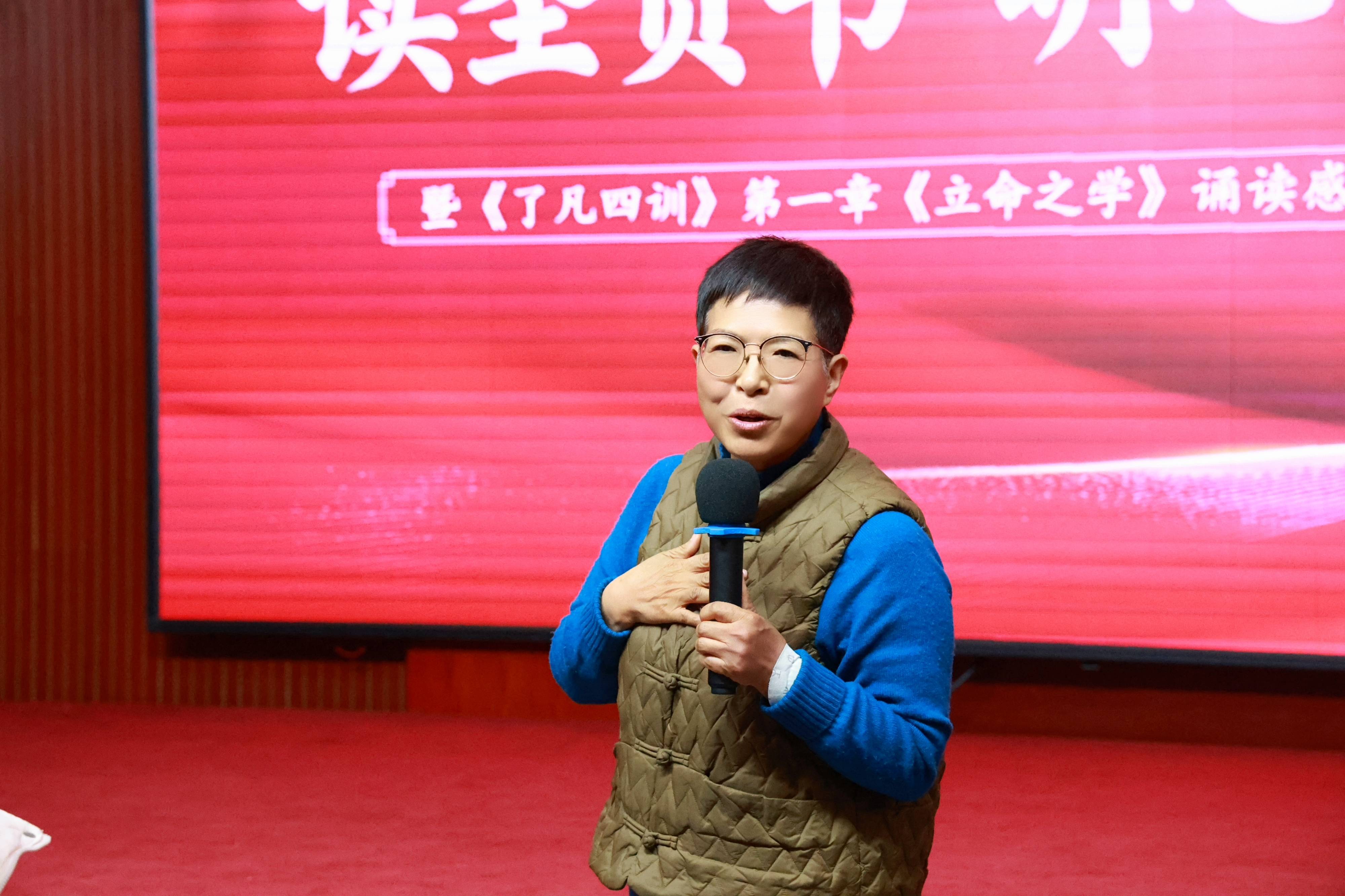 诵读结束后,活动进入了分享环节。焦安国老师首先上台,他结合自身经验,深刻阐述了“立命”与“塑造心相”的智慧在现代工作中的应用,为与会者提供了宝贵的启示。
