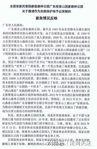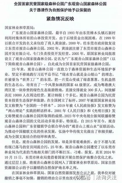 全国首家民营国家级森林公园广东观音山国家森林公园关于恳请作为自然保护地予以保留的紧急情况反映