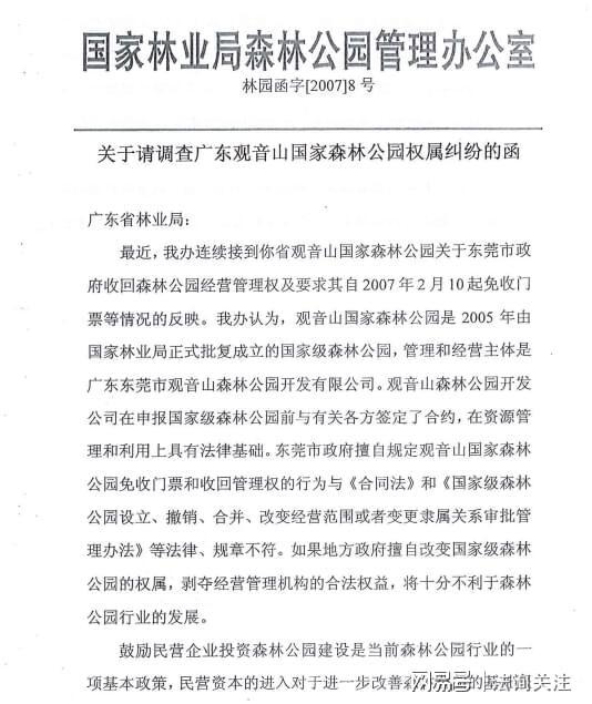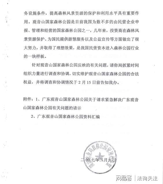 同日,观音山国家森林公园以相同内容向国家林业和草原局递送了《全国首家民营国家级森林公园广东观音山国家森林公园关于恳请作为自然保护地予以保留的紧急情况反映》。