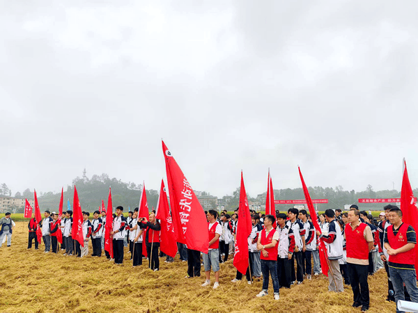 9月24日,金秋稻浪翻滚间,重庆市涪陵第十七中学校联合渝妹儿米业(重庆)集团有限公司,组织160余名党员教师、共青团员及学生代表走进田间,开展“犁耕党建+劳动教育”秋收实践活动,将党建课堂搬到地头、把劳动教育融入田间,以实干践行初心,以躬耕培育新人。