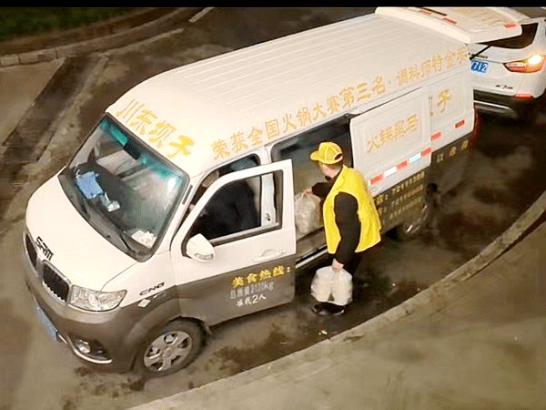 24时许,志愿者们将打包好的汤圆装车,分成几路送往各个清扫点。