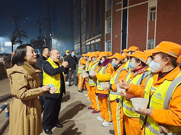 为进一步关心关爱一线“美容师”。1月21日,重庆市涪陵区餐饮(商)协会党支部除夕夜组织开展了慰问环卫工人活动,为200余名环卫工人送去一碗碗暖心汤圆加鸡蛋,用实际行动感谢“美容师”在除夕夜清扫烟花爆竹为维护城市环境付出的辛劳。