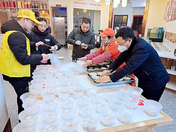 当天23时许,在涪陵区三环路依碟旁的菜施香餐厅开始热闹起来,涪陵区餐饮(商)协会党支部书记奚正国带领党员、入党积极分子、协会志愿者烧热水、煮汤圆、煮鸡蛋、打包,为给凌晨清扫烟花爆竹的环卫工人送汤圆而忙碌着。