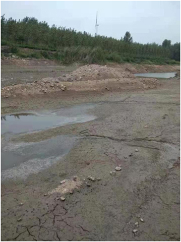 2017年秋后,大桥沟建了一个扶贫水库;2018年3月份,村支书杨某岱和村主任杨某国为了偷沙卖沙,留下了土堆在水库中间,至今还没有清理。