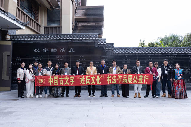 上午9时,考察团抵达中国古文字博物馆。馆长谭文贵在欢迎辞中表示:“文字是文明的载体,姓氏是血脉的延续。我们要让收藏在博物馆里的文物、陈列在广阔大地上的遗产都活起来。”在参观馆藏文物后,中国古文字博物馆唐健文秘书长宣布“中国古文字姓氏文化书法展公益行”成都站正式启动。全体嘉宾手持姓氏书法作品合影,齐声喊出“触摸文字温度,寻根姓氏启缘”的活动口号,现场气氛庄重热烈。