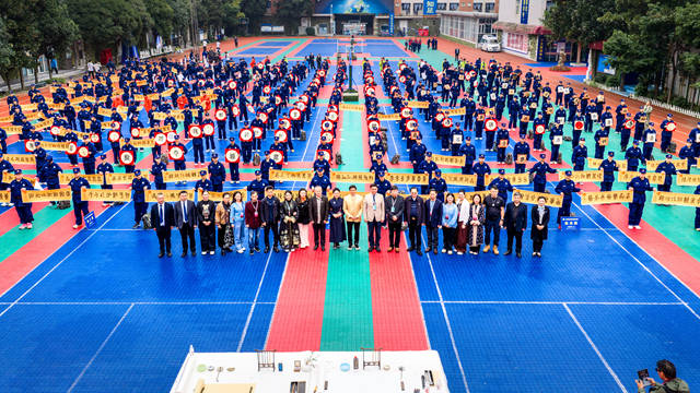 随后,500余名学生共同展示由唐健文创作的300幅姓氏文化书法作品。这场规模宏大的“中国古文字姓氏文化书法展公益行”,不仅展现了中华文字之美,更让学生们在实践中感受传统文化的魅力。