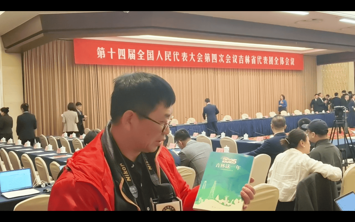 共工新闻社北京电(鹤霖)3月7日,十四届全国人大四次会议期间,吉林省代表团举行开放团组活动。活动入口处设置的展示台成为现场媒体关注的焦点——《2025吉林这一年》和《2026吉林新一年》两本“吉林双年书”整齐陈列,成为众多中外记者入场前争相打卡的“爆款单品”。不少媒体记者表示,这两本书内容翔实、图文并茂,是快速读懂吉林发展脉络的“第一窗口”。