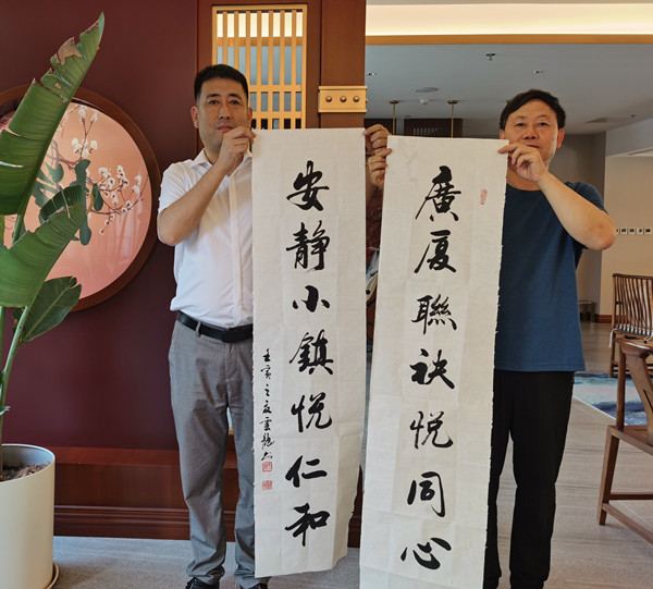 8月1日,由中国书画界联合会副主席兼秘书长李云龙组织书画艺术家们走进悦之府国际退休村,开展“庆建军95周年‘八一’翰墨谱华章”书画笔会活动,出席活动的嘉宾有: 中国书画界联合会副主席兼秘书长、理事、中国书法艺术研究院副院长兼秘书长、理事李云龙;中国书画界联合会理事会常务理事、中国书法艺术研究院副院长陈华成;中美文化大使周鸿儒;中国书画院院士、中国书法艺术研究院理事、墨腾书画院副院长刘玉阁;国礼画家、国家一级美术师、北京书画院艺术联盟主席团 执行主席王世军;中国书法艺术研究院会员刘寅峰等老师和悦之府国际退休村员工共同举办此次活动。以翰墨丹青为这里居住的退休官兵贡献了一场视觉盛宴,送上节日的祝福,受到退休官兵的热烈欢迎。