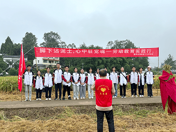 9月24日,金秋稻浪翻滚间,重庆市涪陵第十七中学校联合渝妹儿米业(重庆)集团有限公司,组织160余名党员教师、共青团员及学生代表走进田间,开展“犁耕党建+劳动教育”秋收实践活动,将党建课堂搬到地头、把劳动教育融入田间,以实干践行初心,以躬耕培育新人。