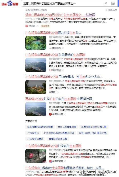 多家权威媒体报道认为《观音山国家森林公园已成为广东生态屏障之一》