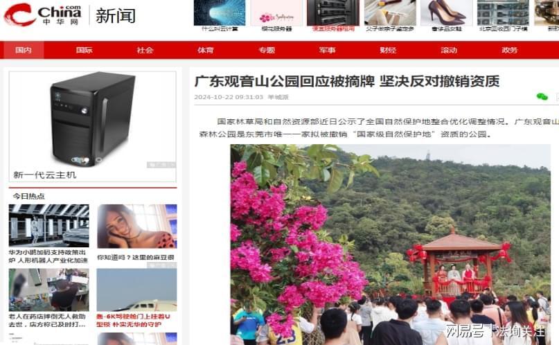 10月22日,中华网发布《广东观音山公园回应被摘牌 坚决反对撤销资质》