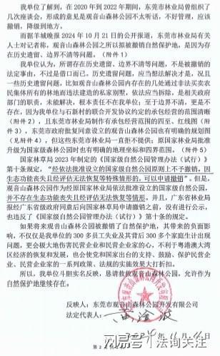 同日,观音山国家森林公园以相同内容向国家林业和草原局递送了《全国首家民营国家级森林公园广东观音山国家森林公园关于恳请作为自然保护地予以保留的紧急情况反映》。